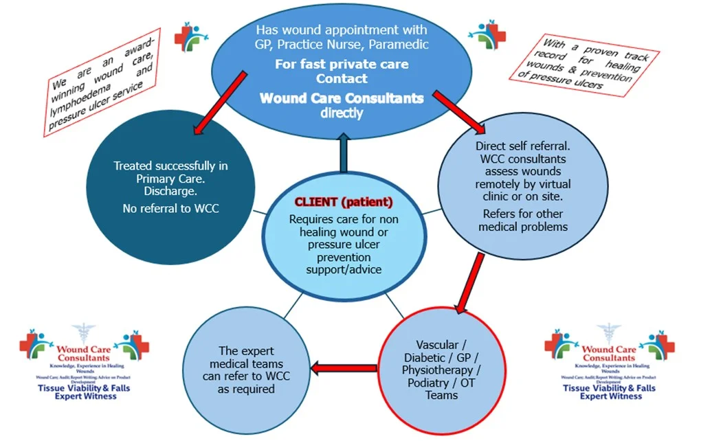 Wound Care Consultants Ltd describes itself as a small, specialised team of clinicians with deep experience in wound care. Their core services include:
